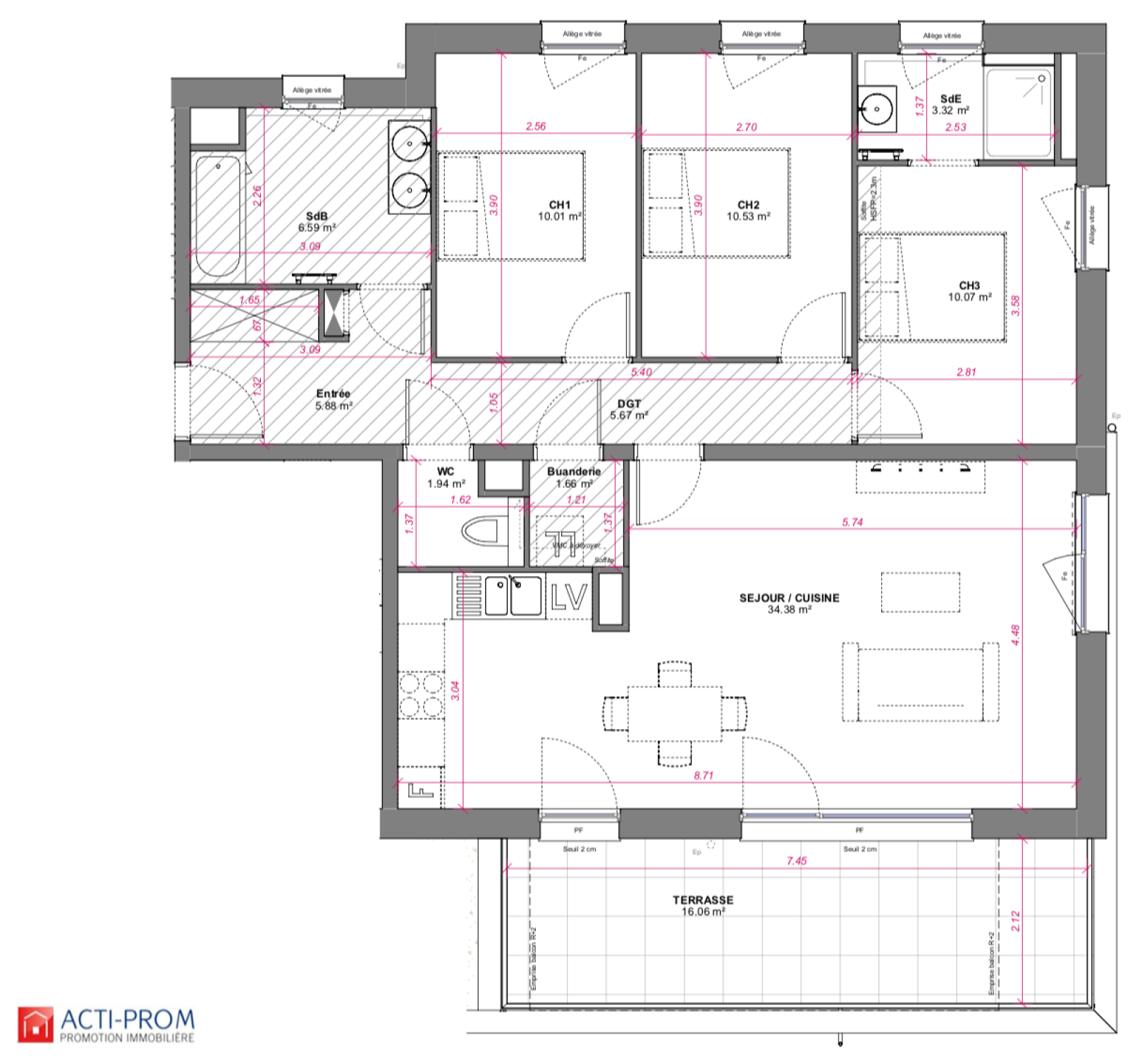 Dès l’entrée, vous serez séduit par un espace avec placard intégré, idéal pour déposer vos affaires. Le vaste séjour de 34,38 m², baigné de lumière grâce à sa grande baie vitrée, offre un espace de vie harmonieux réunissant salon, salle à manger et cuisine ouverte.