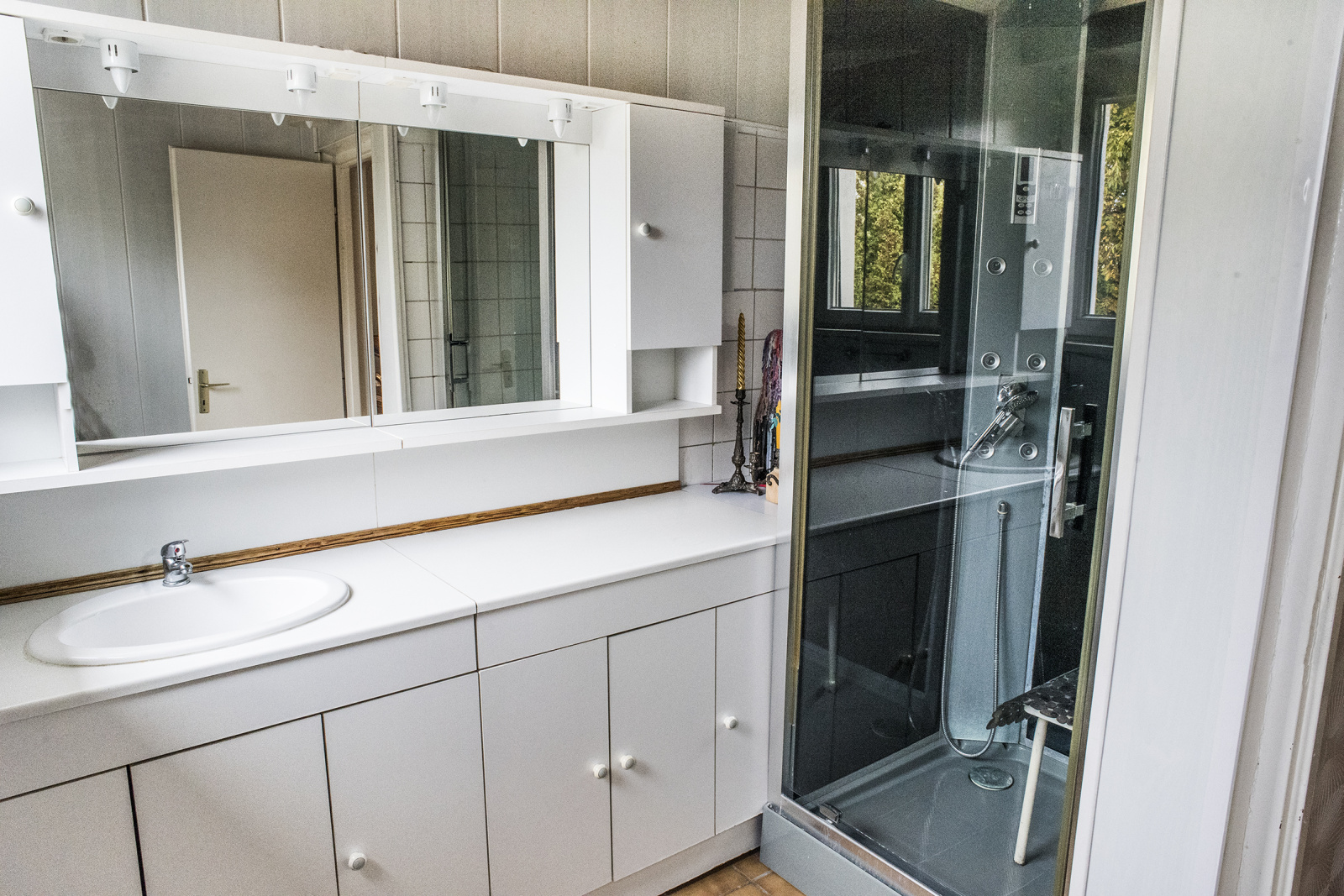 Pour la partie nuit, la maison dispose d'une salle d'eau avec douche, toilettes, et vasque avec mobilier de rangement. Vous pourrez apprécier les trois chambres à coucher avec leur larges ouvertures offrant une belle luminosité.