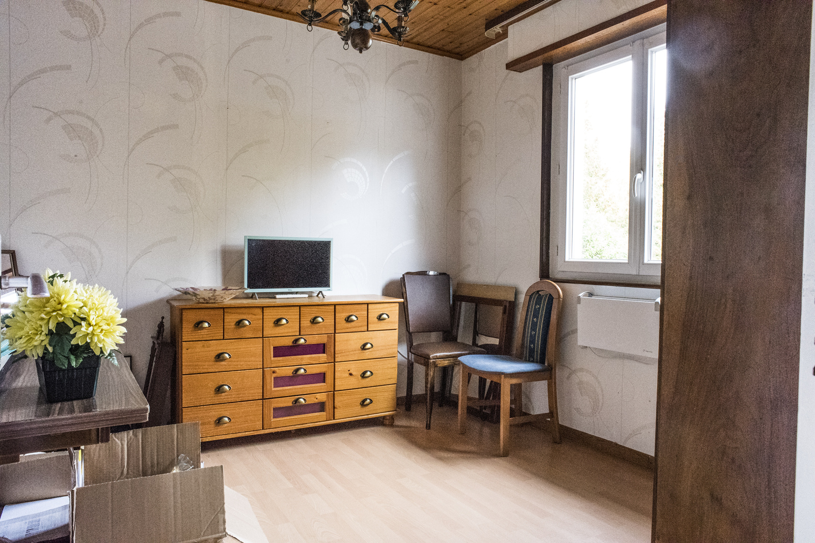 Un accès à l'étage est déjà en place, les combles étant pré-aménagées, avec une dalle en béton et une isolation en place. Cet espace vous offre de nombreuses possibilités d'aménagement : espace parental, salle de jeux, bureaux, etc.