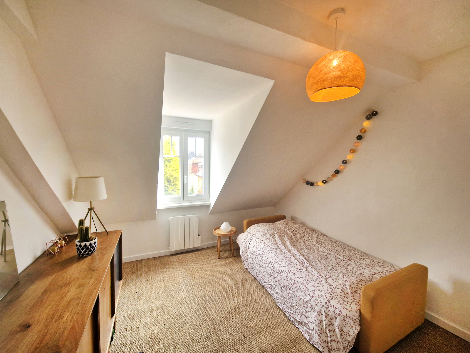 Situé au 2ème et dernier étage d'une maison tri-famille, vous profiterez de tout le calme et de la sérennité que vous offre cette habitation située dans un quartier résidentiel de Schiltigheim. Avec ses 80m2 utiles, vous profiterez de pièces spacieuses et faciles à meubler.