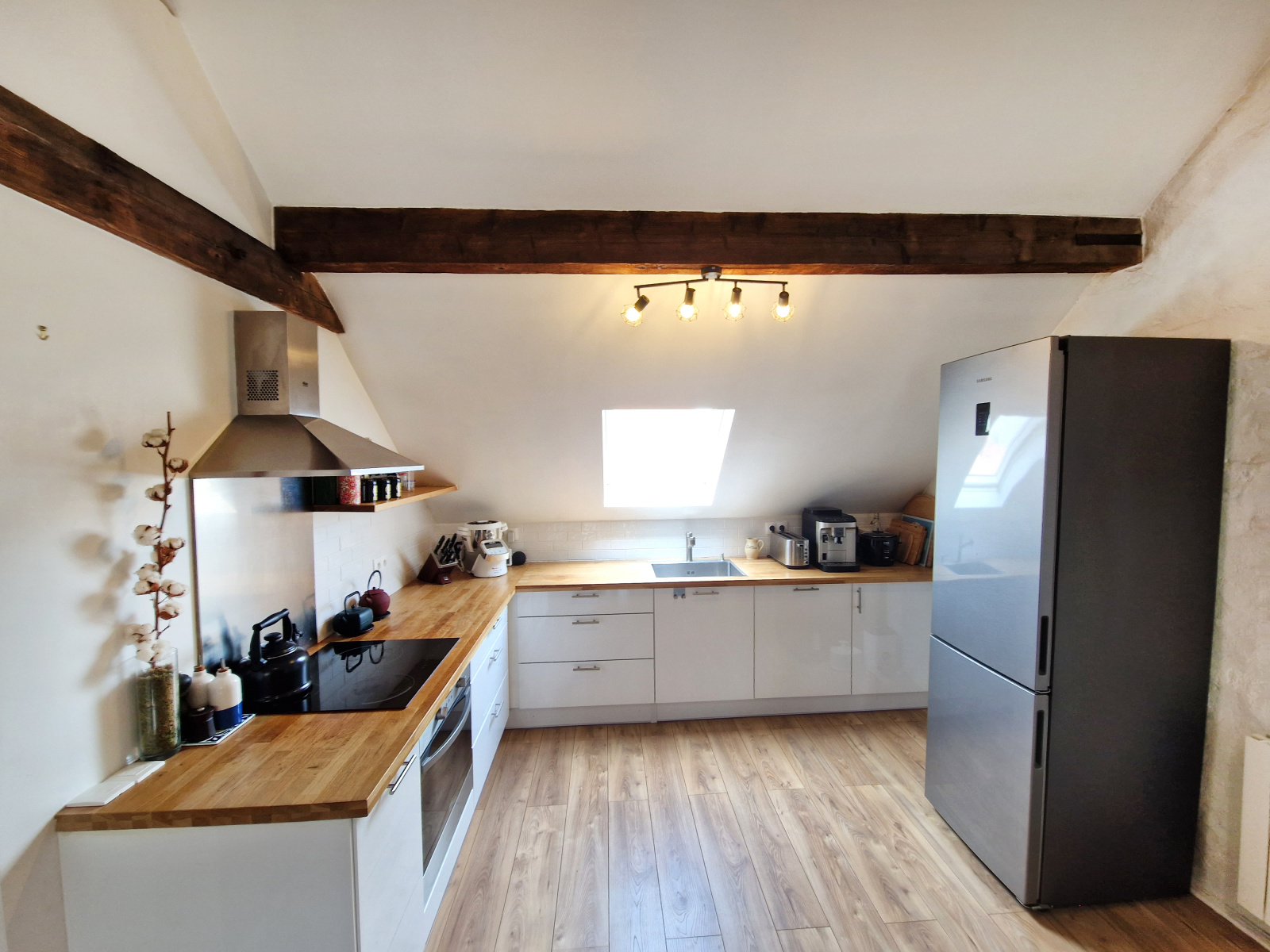 Vous apprécierez le confort et la luminosité du séjour traversant, de sa cuisine entièrement équipée aux tendances actuelles. La pièce de vie en toit cathédrale offre un beau volume aéré et spacieux. Une petite mezzanine ouverte sur le séjour vous propose un petit coin cosy pour la détente et la lecture, pouvant être aménagé en couchage d'appoint.