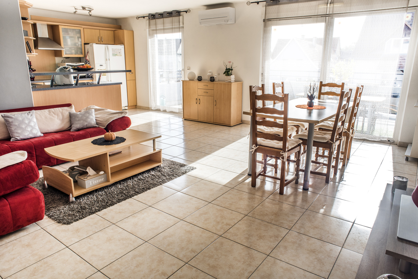 Schirrhoffen (67240)Très bel appartement d'une surface de 76 m2 construit en 2005 situé en rez-de-chaussé surélevé. Il est constitué d'une entrée avec placard mural (penderie et étagères), d'un espace de vie confortable et généreux de 40m2 : salon, séjour et cuisine équipée ouverte. La cuisine et l'espace séjour permettent un accès direct sur la terrasse. Cette dernière d'une surface exceptionnelle de 38m2 (orientée Sud) apporte un espace extérieur spacieux et convivial. L'appartement propose également deux belles chambres, une salle de bain complète et des toilettes individuelles. Pour compléter le tout, vous profiterez d'un parking extérieur, d'un parking intérieur et d'une cave.