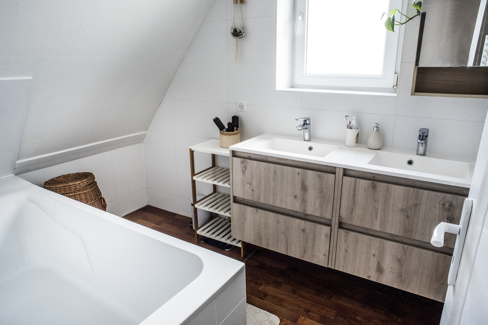 Montez à l’étage : un palier dessert deux jolies chambres aux volumes confortables, une salle de bain ainsi qu’un WC séparé pratique pour un étage nuit. Mais la visite ne s’arrête pas là. Par un escalier supplémentaire, accédez aux combles aménagés en une pièce sous toit avec deux velux — un espace cosy idéal comme chambre d’appoint, coin lecture ou bureau, selon vos envies.