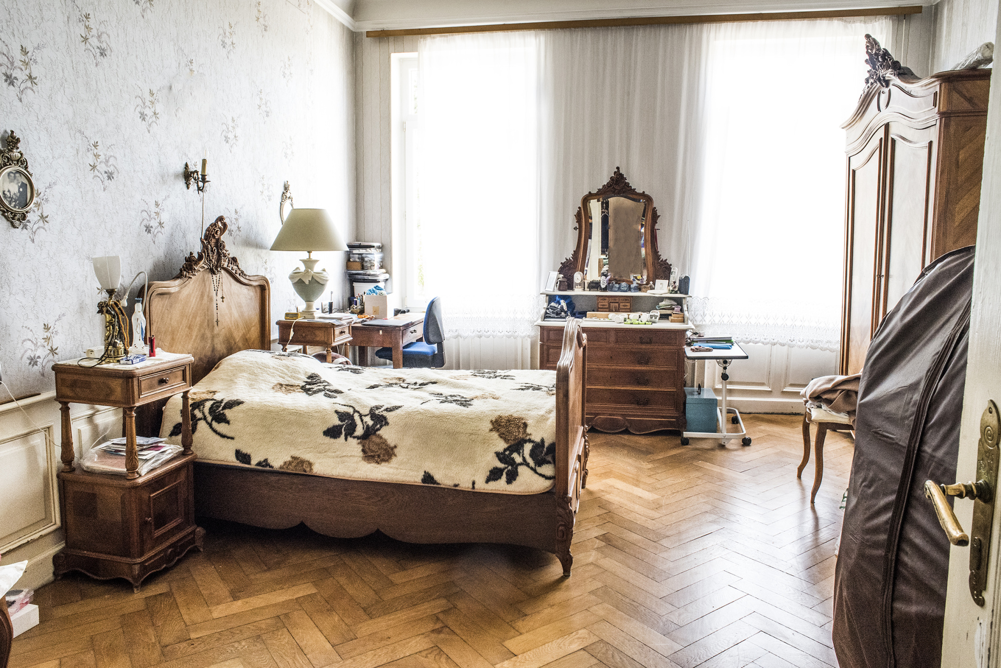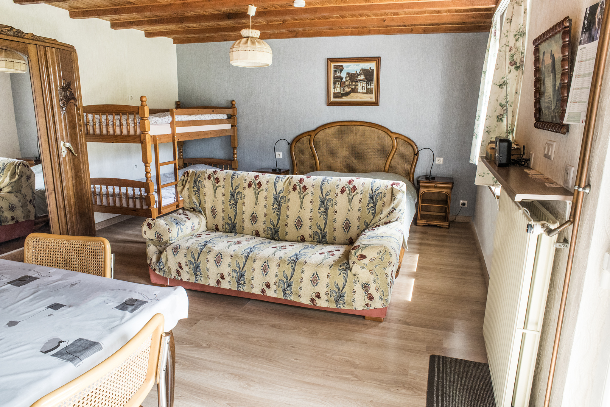 L’étage abrite cinq chambres meublées, actuellement louées, une salle de bains commune ainsi qu’un local technique. Les combles, accessibles depuis le demi-niveau intermédiaire, offrent un potentiel supplémentaire pour l’aménagement ou le stockage.