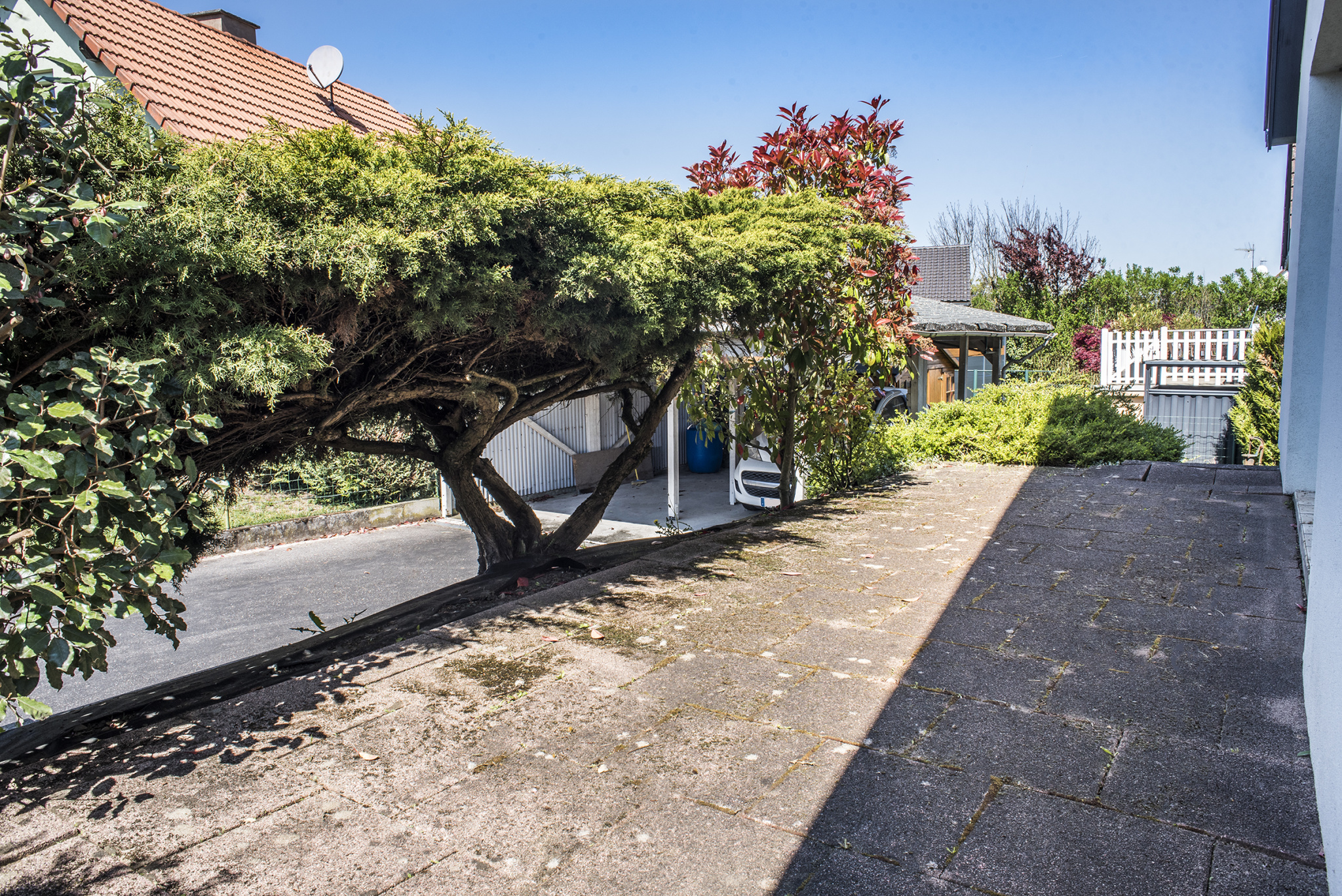 À l’extérieur, vous bénéficierez également d’un carport permettant d’accueillir deux voitures côte à côte, ainsi que d’une grande cour, idéale pour le stationnement ou les aménagements extérieurs.
